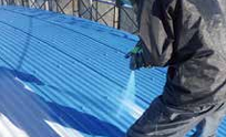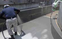 スプレー塗布による施工で1日当たり数百㎡の施工が可能。吹付け後、硬化に要する時間は数十秒~数分で、施工後数時間で歩行可能、条件によっては数時間で供用可能です。
